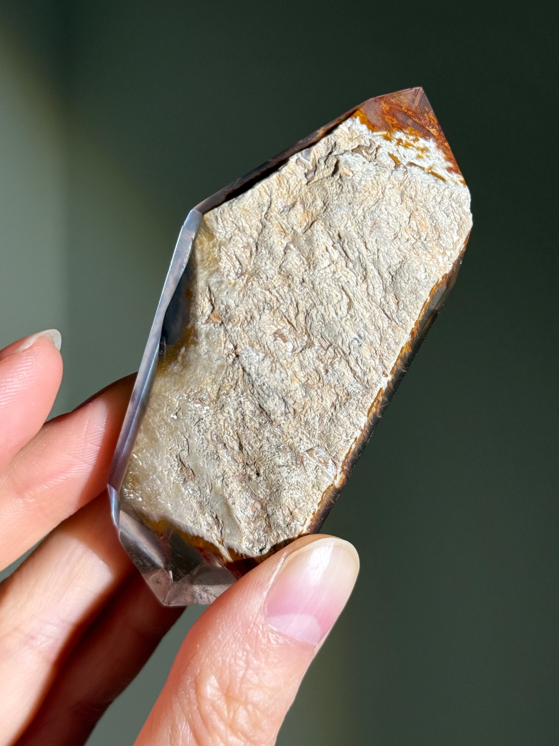 Collector's Grade Water Clear Orange Red Amphibole Quartz Double Terminated Freeform