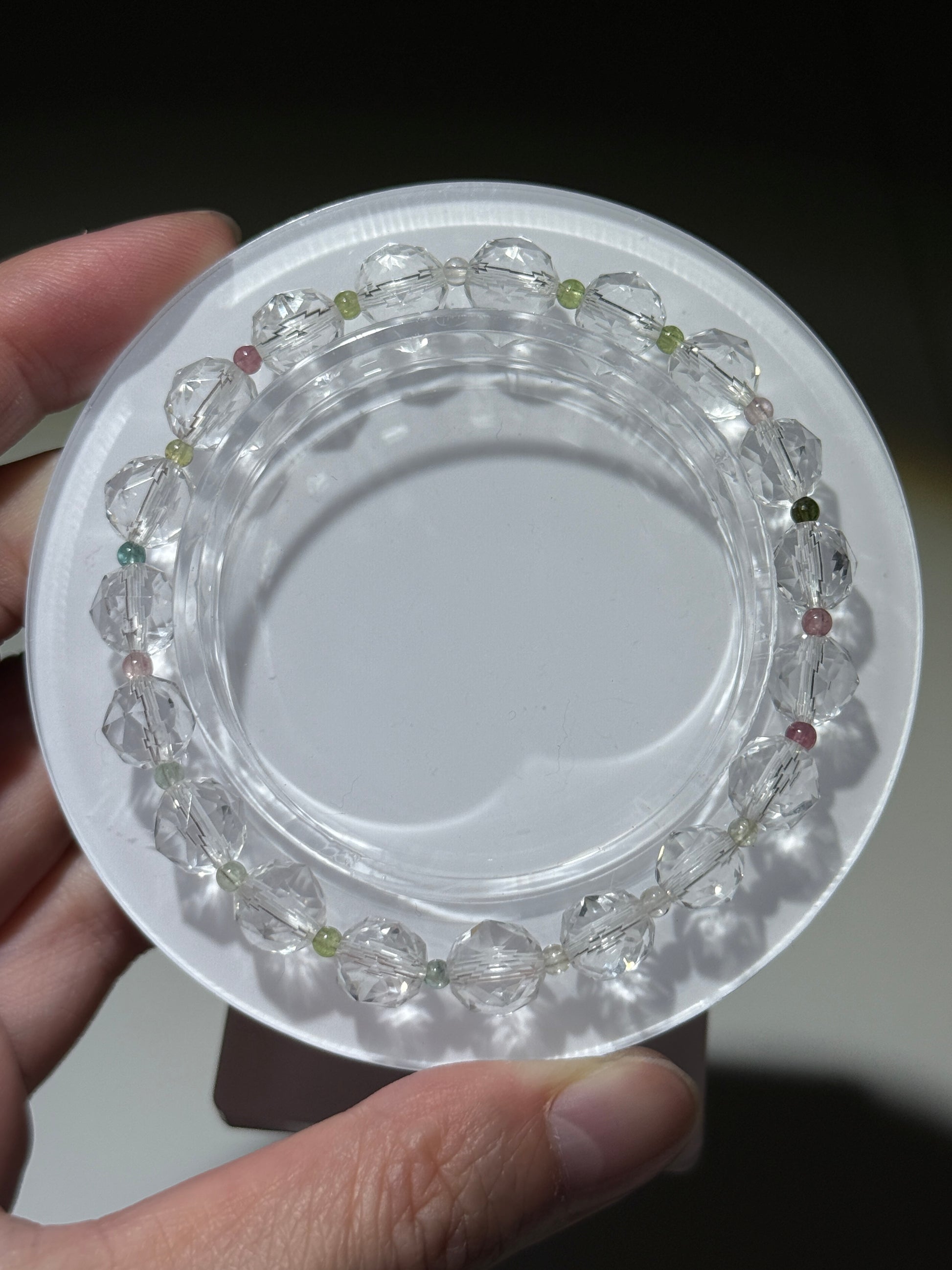 Faceted Clear Quartz Bracelets With Watermelon Tourmaline Beads, 8mm