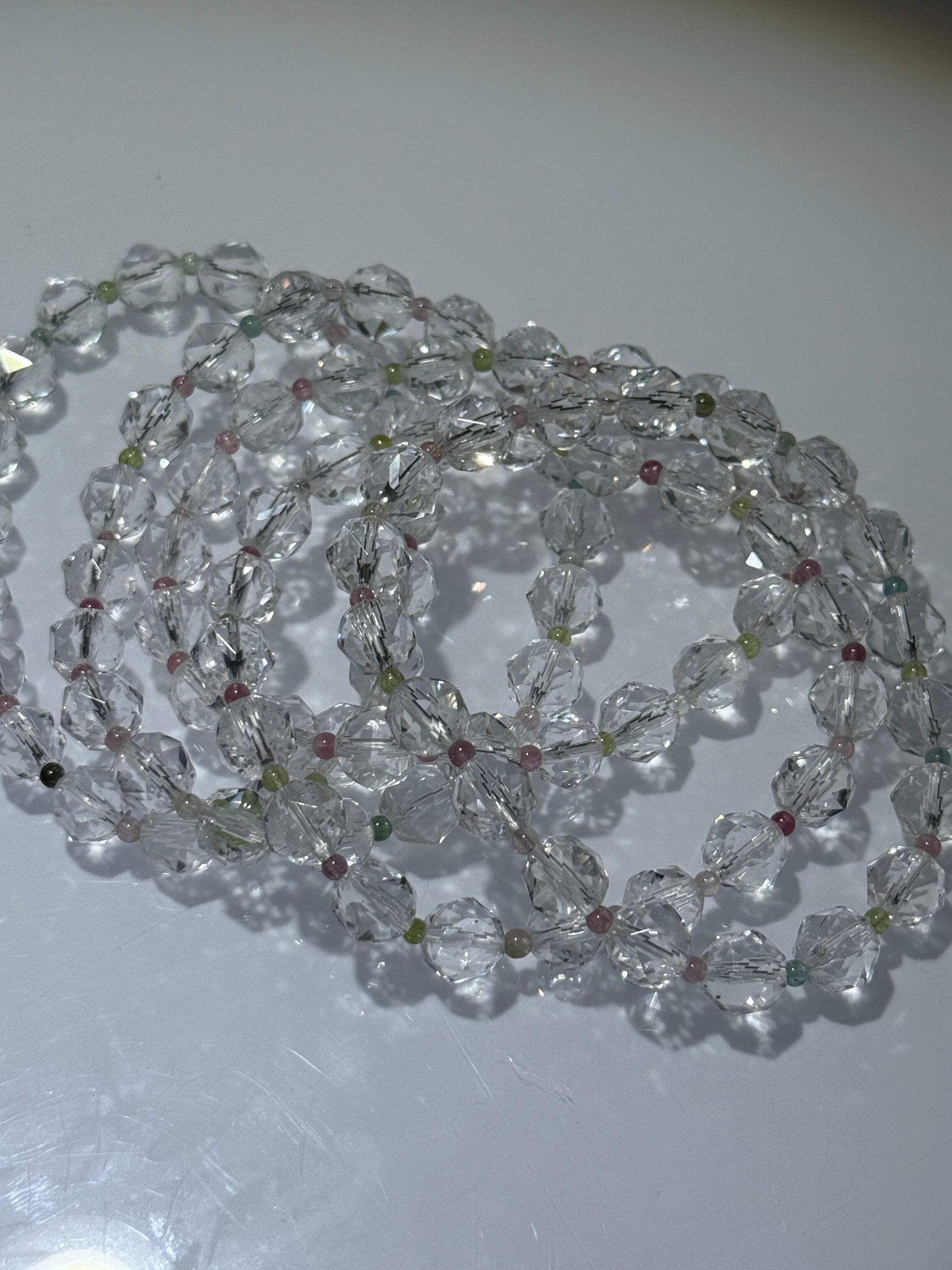 - Clear quartz, watermelon tourmaline