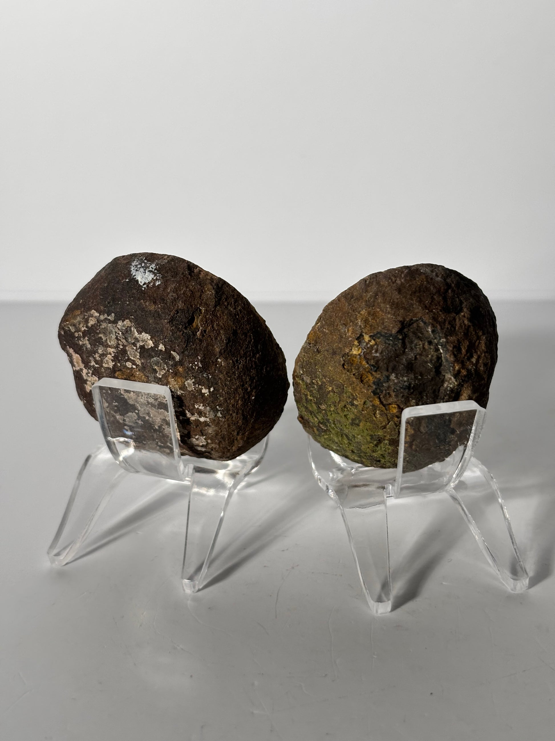 High quality uncommon mustard yellow fall vibe druzy Zhanguo agate pair. Comes with stand.