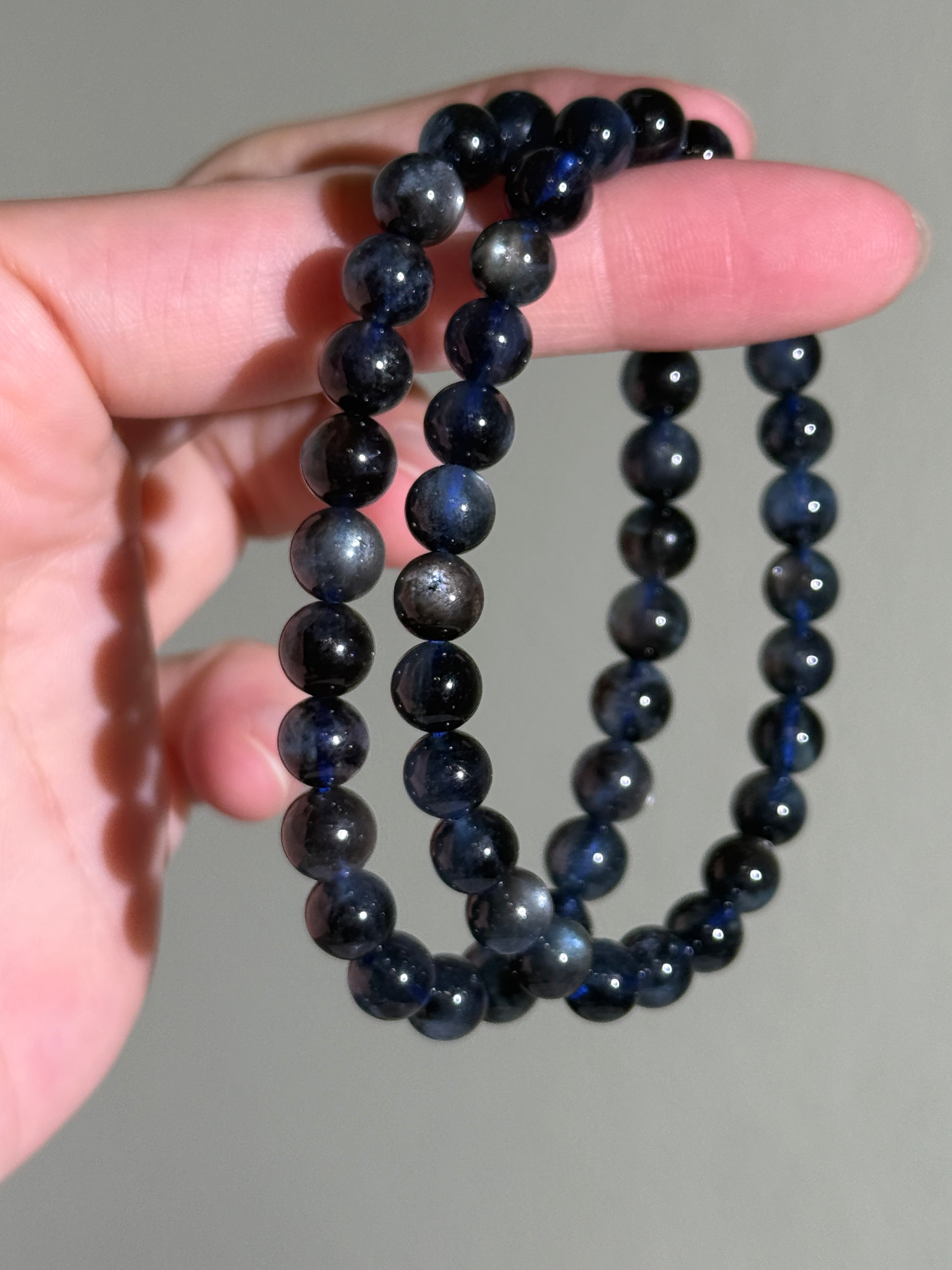 Our devil aquamarine with silver flash bracelets were carefully handpicked from our vendor. Each bracelet is created with care and hand-strung with elastic string.
