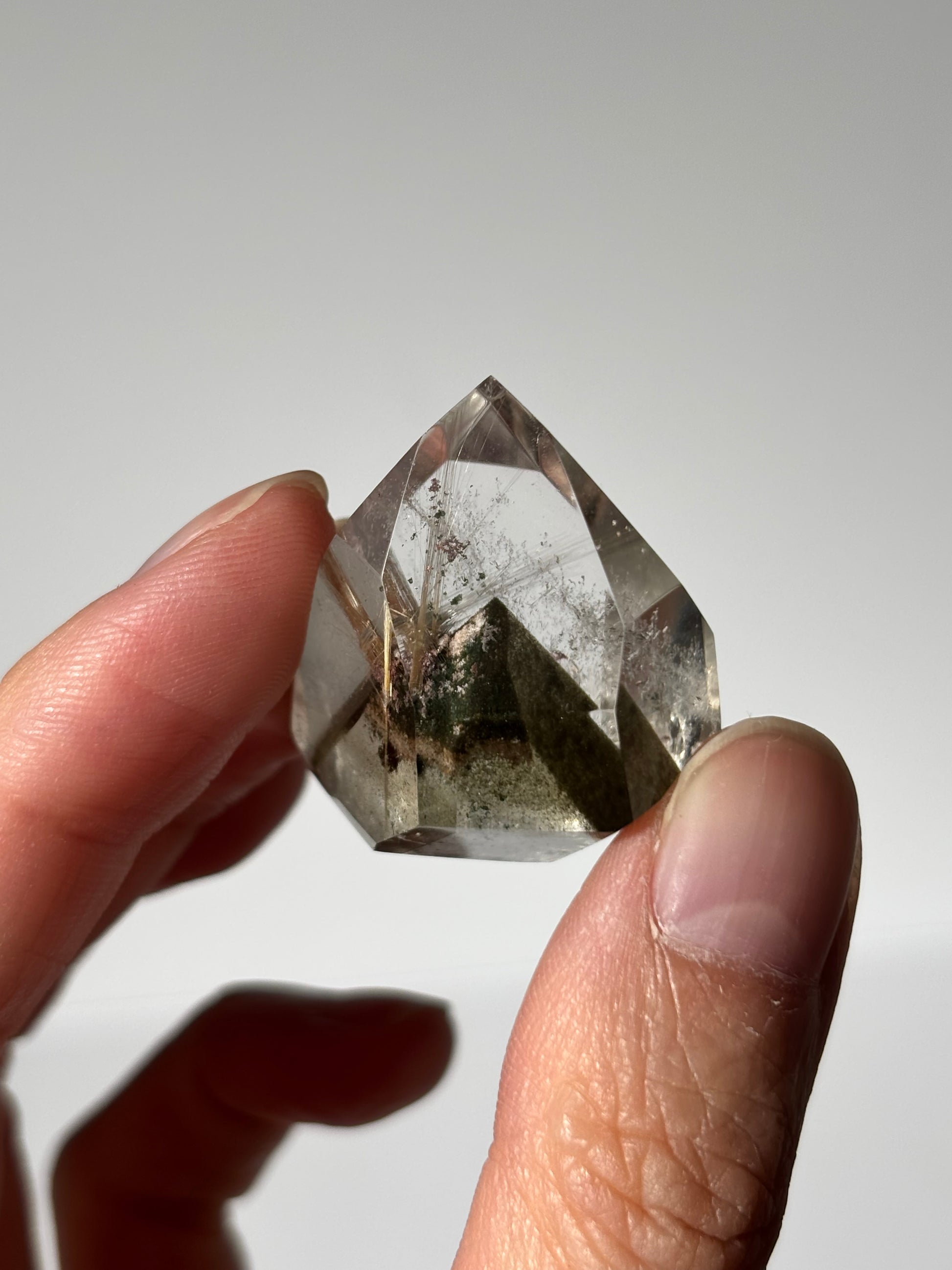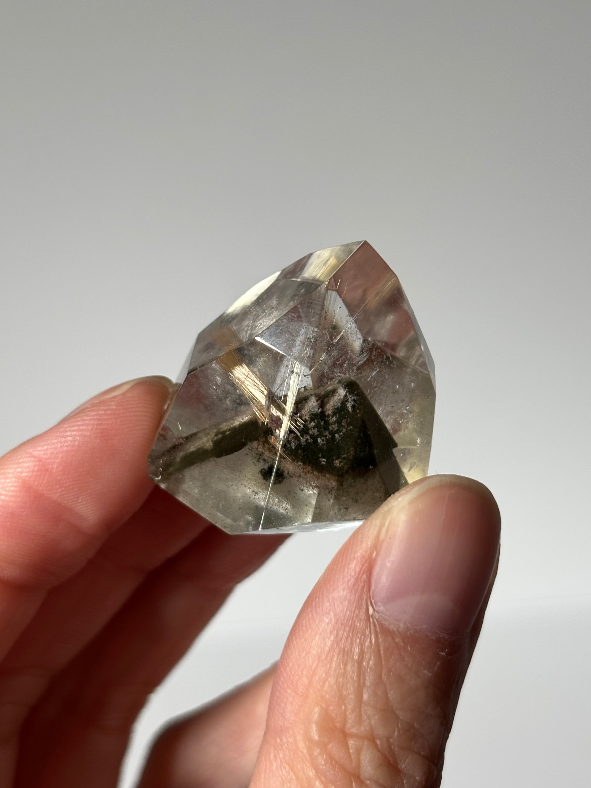 High Quality Golden Starburst Rutile on Green Phantom Chlorite Freeform, Brazil
