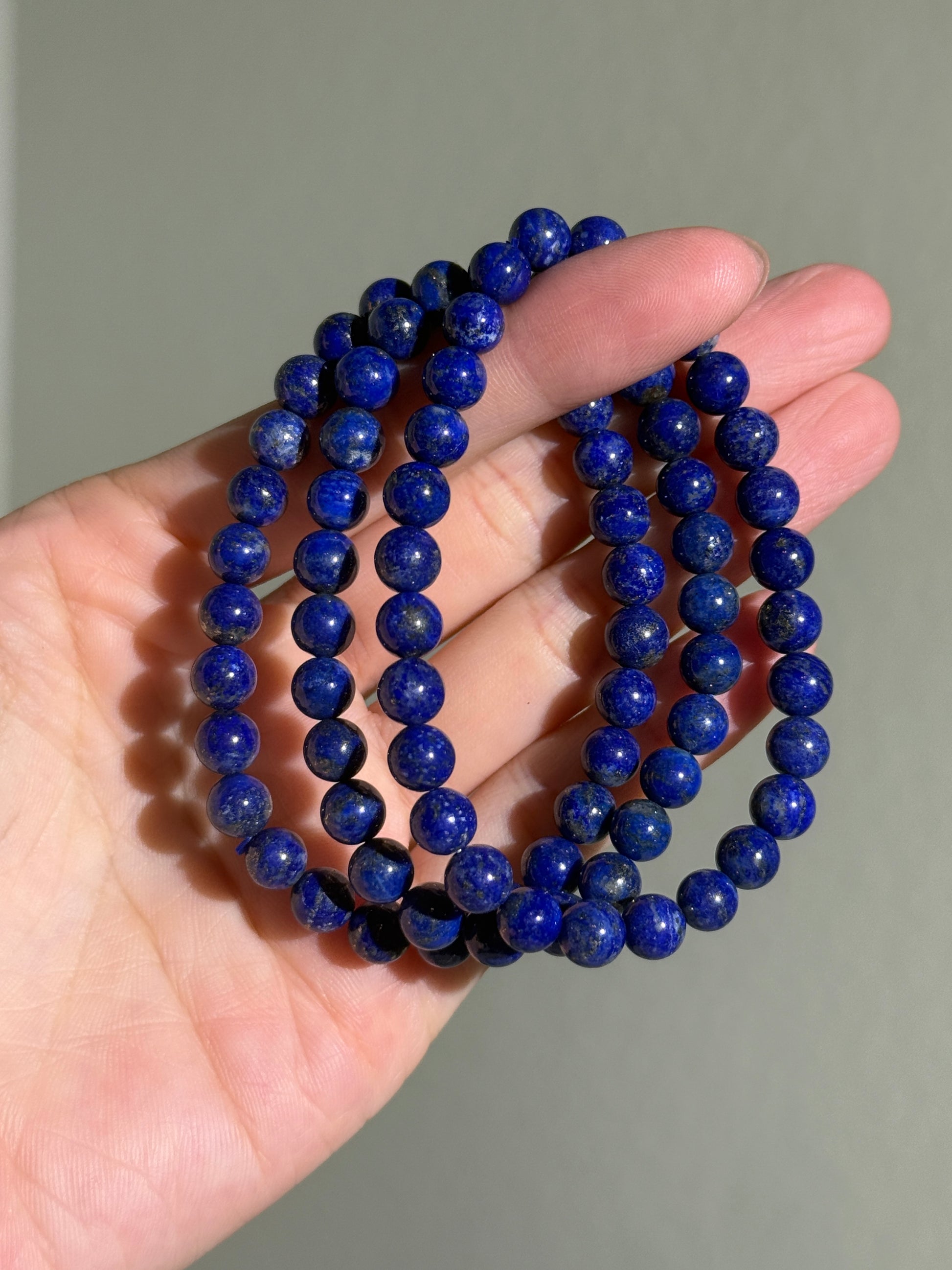 Our lapis lazuli bracelets were carefully handpicked from our vendor. Each bracelet is created with care and hand-strung with elastic string.