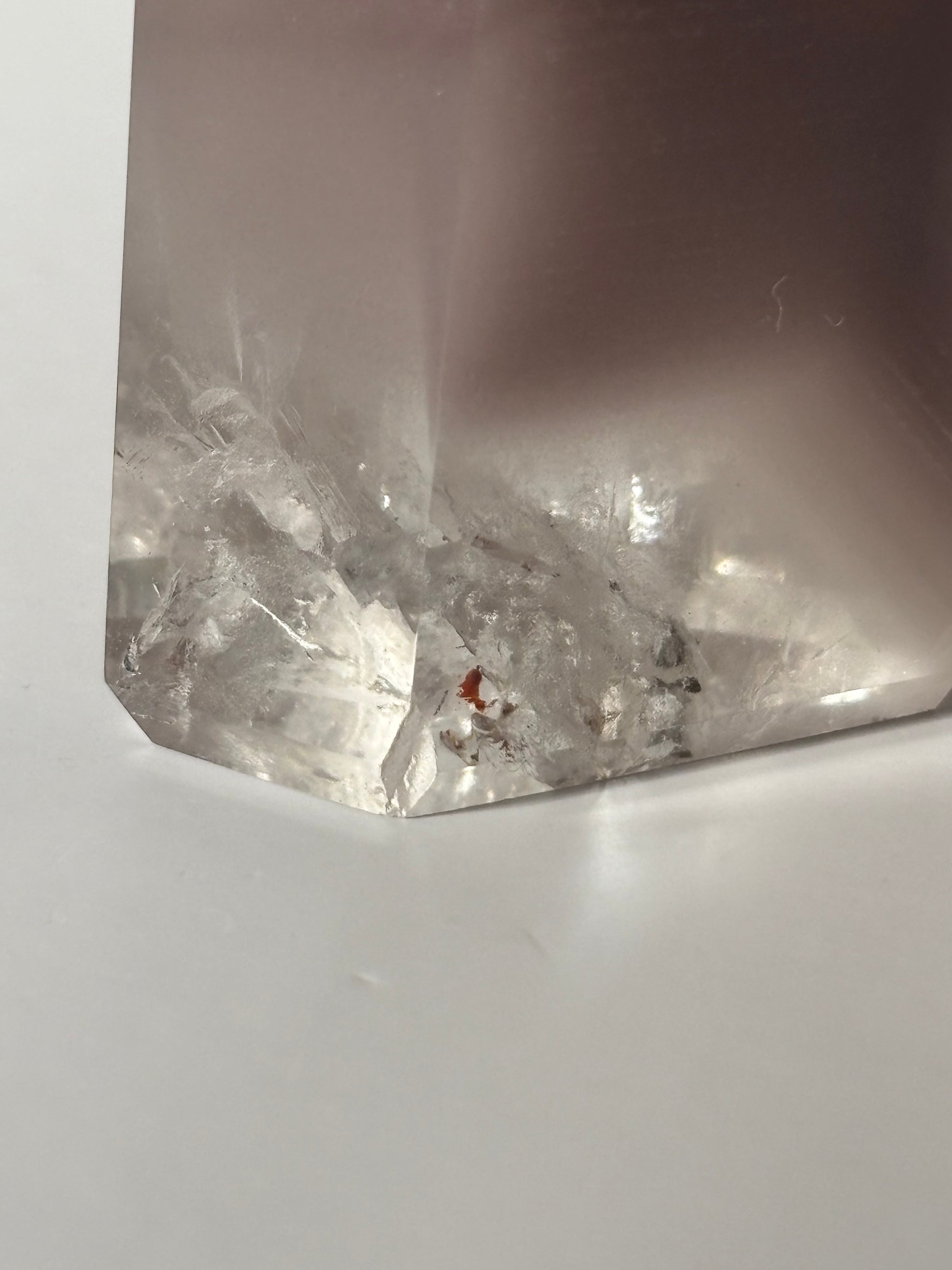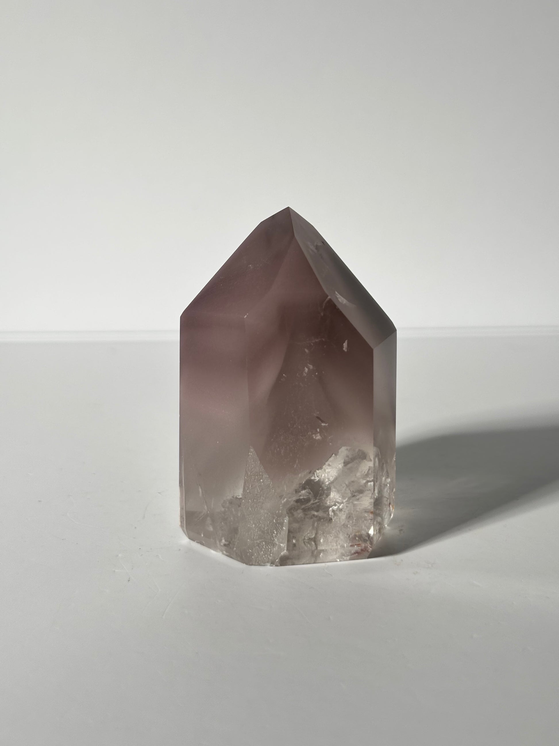 High quality large chunky pink lithium quartz tower. Self standing. Note that pink lithium quartz is a trade name and the crystal itself may or may not contain lithium.
