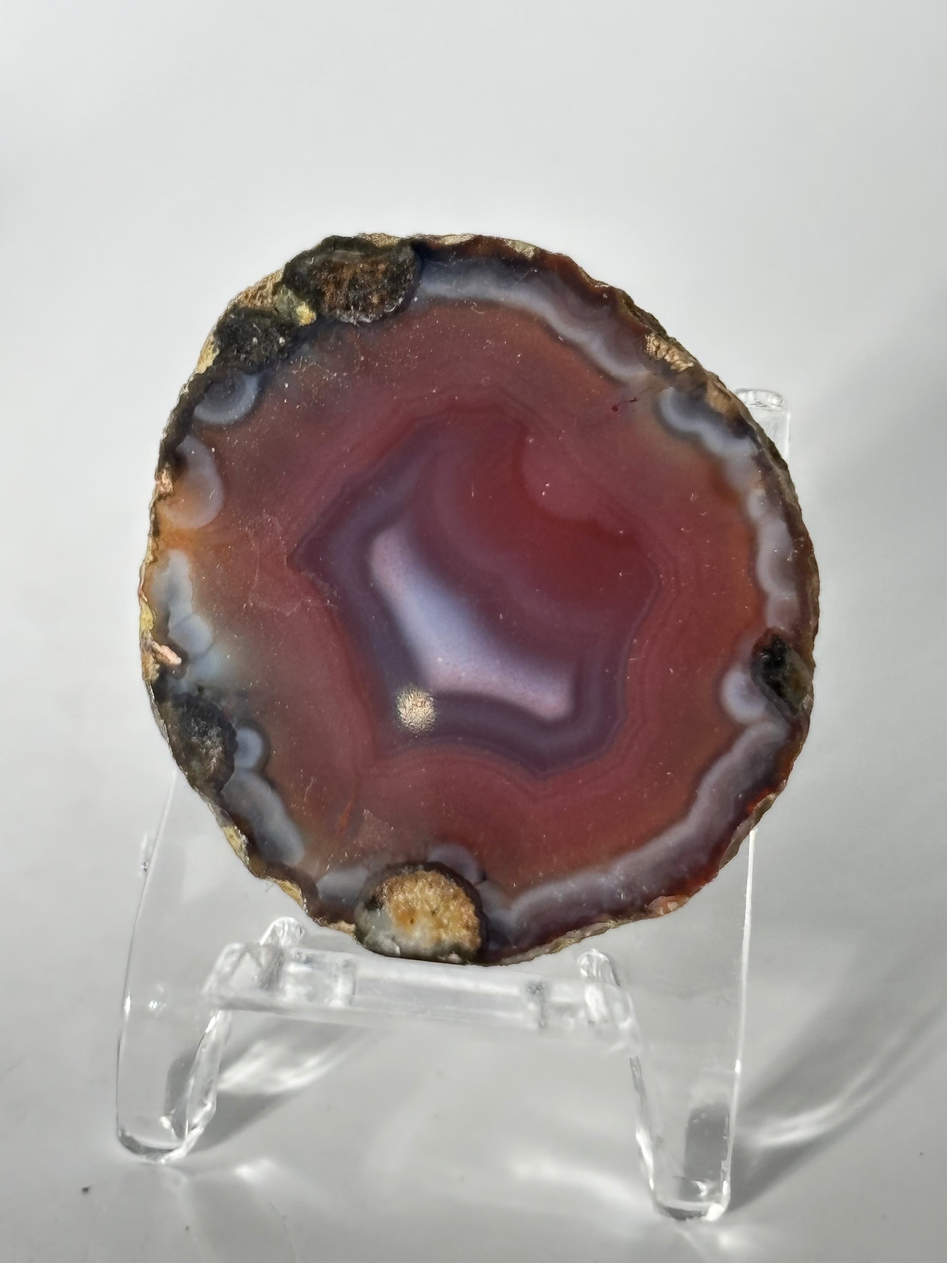 High quality pink Zhanguo agate pair. Comes with stand.