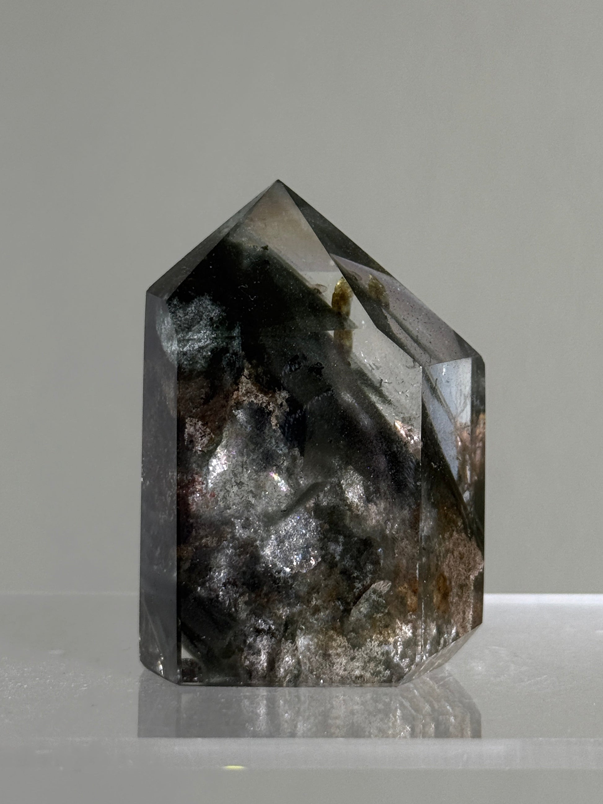 High Quality Water Clear Dark Green Phantom Chlorite Quartz Tower With Epidote, Zambia
