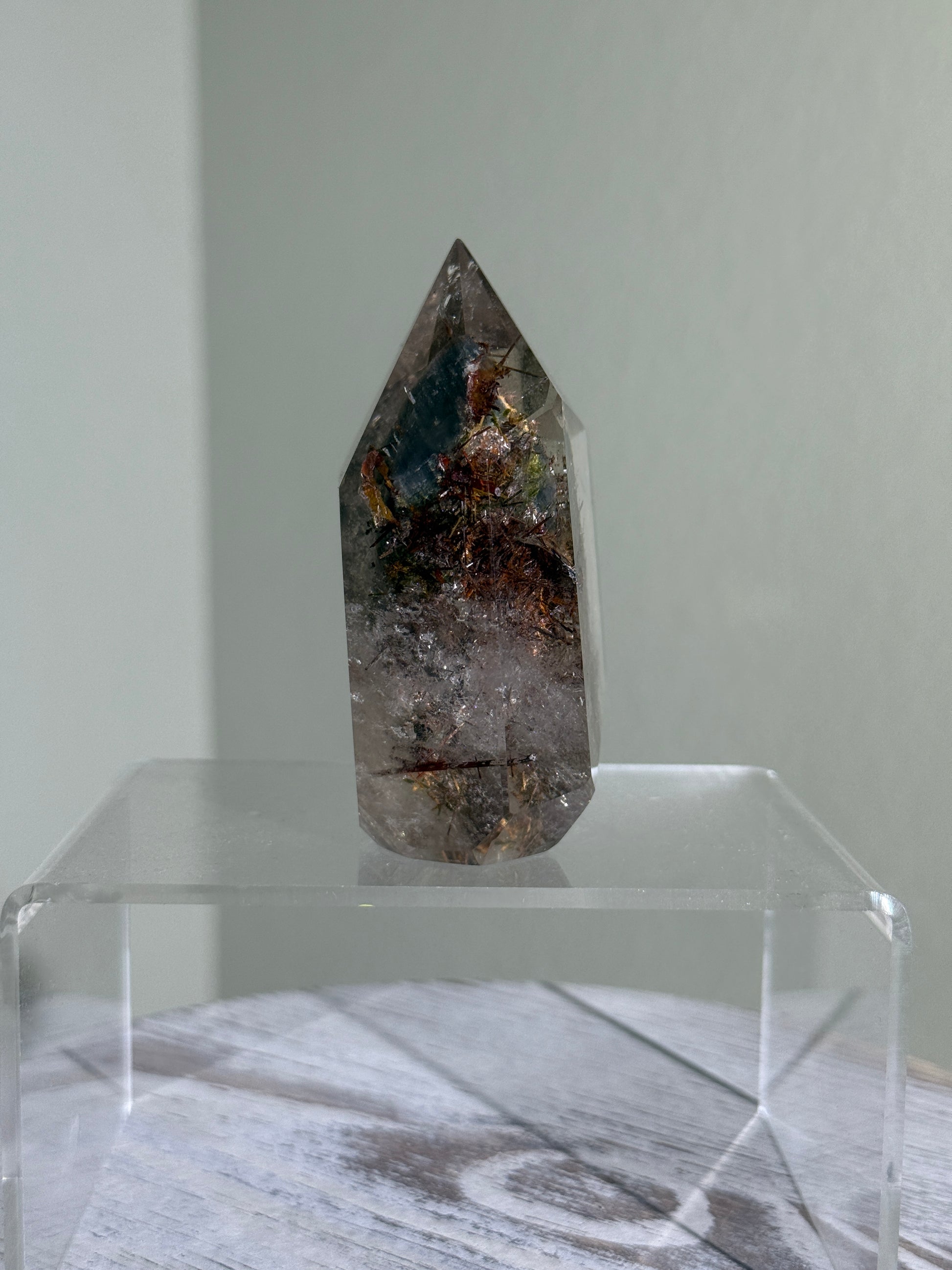 Rare Large Grey Amphibole On Lodalite With Red & Green Epidote in Quartz Tower, Zambia