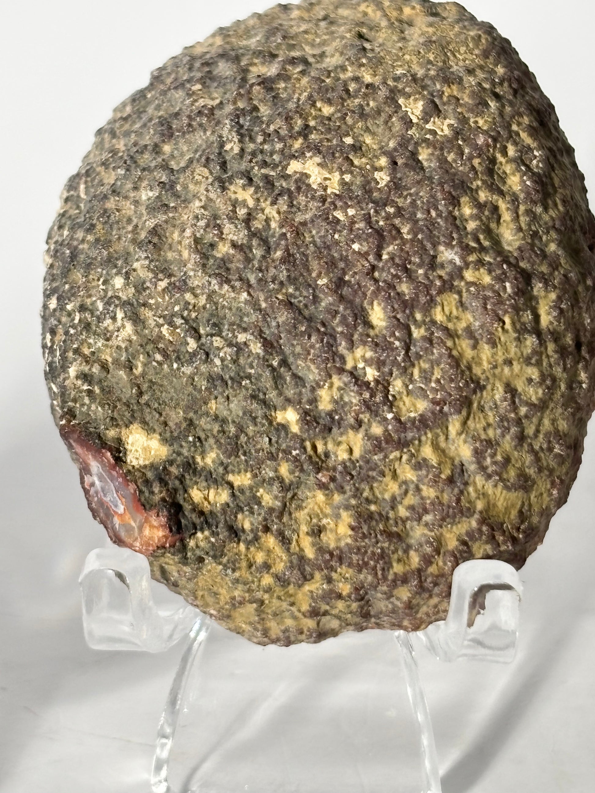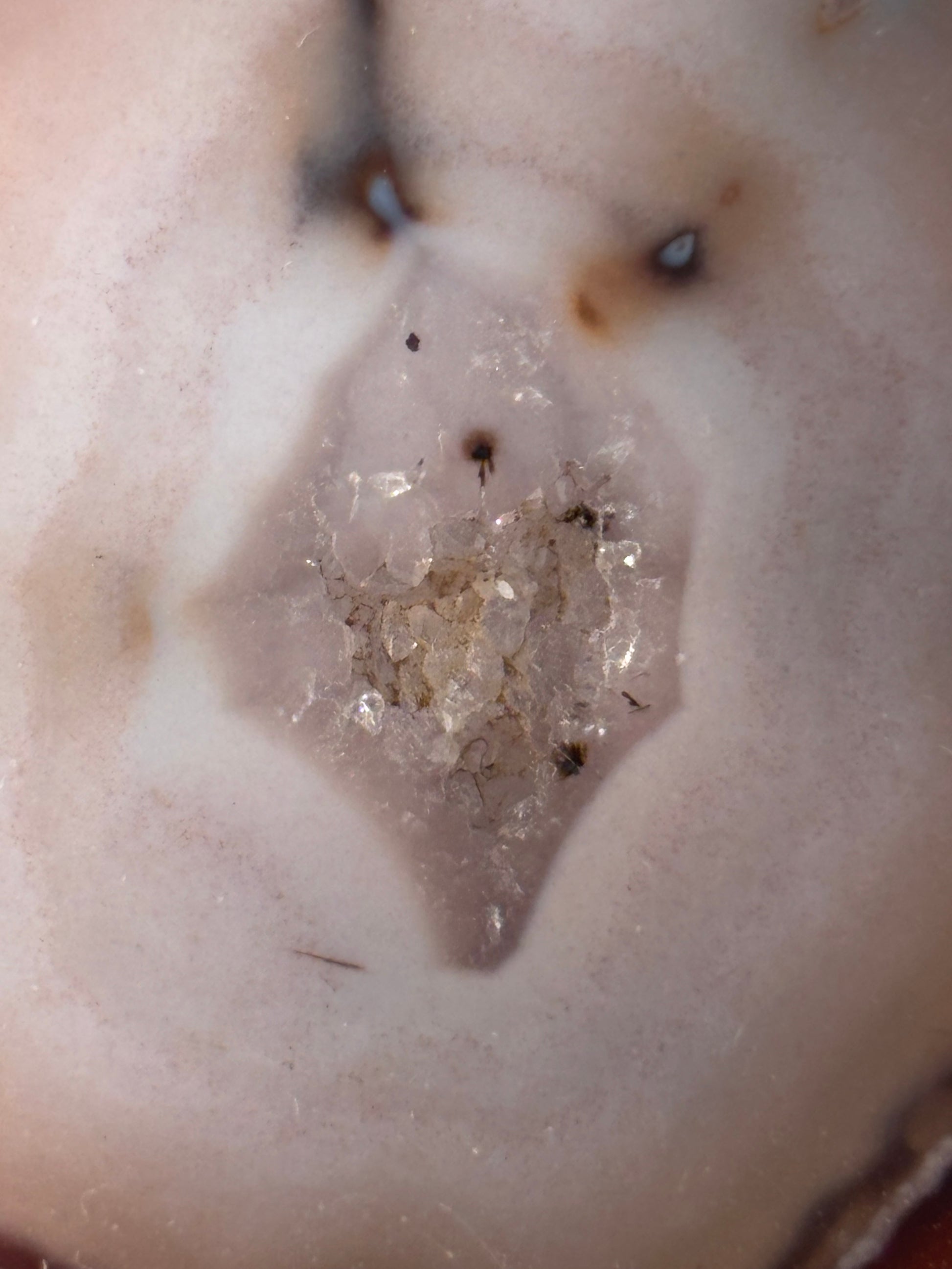 High quality unique pink druzy zhanguo agate pair with red rims. Comes with stands.