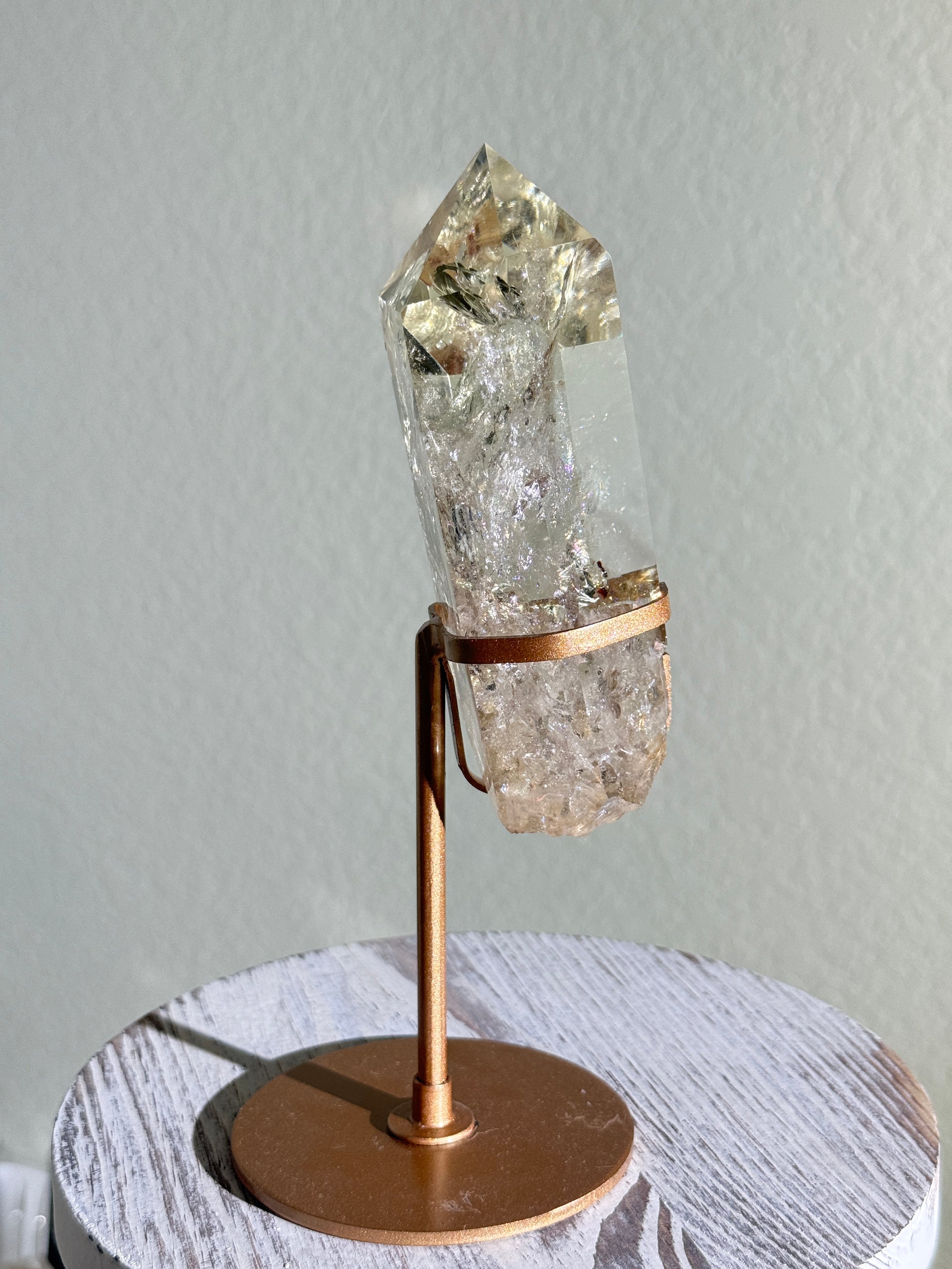 Statement Natural Champagne Rainbow Citrine Point On Customized Stand, Brazil