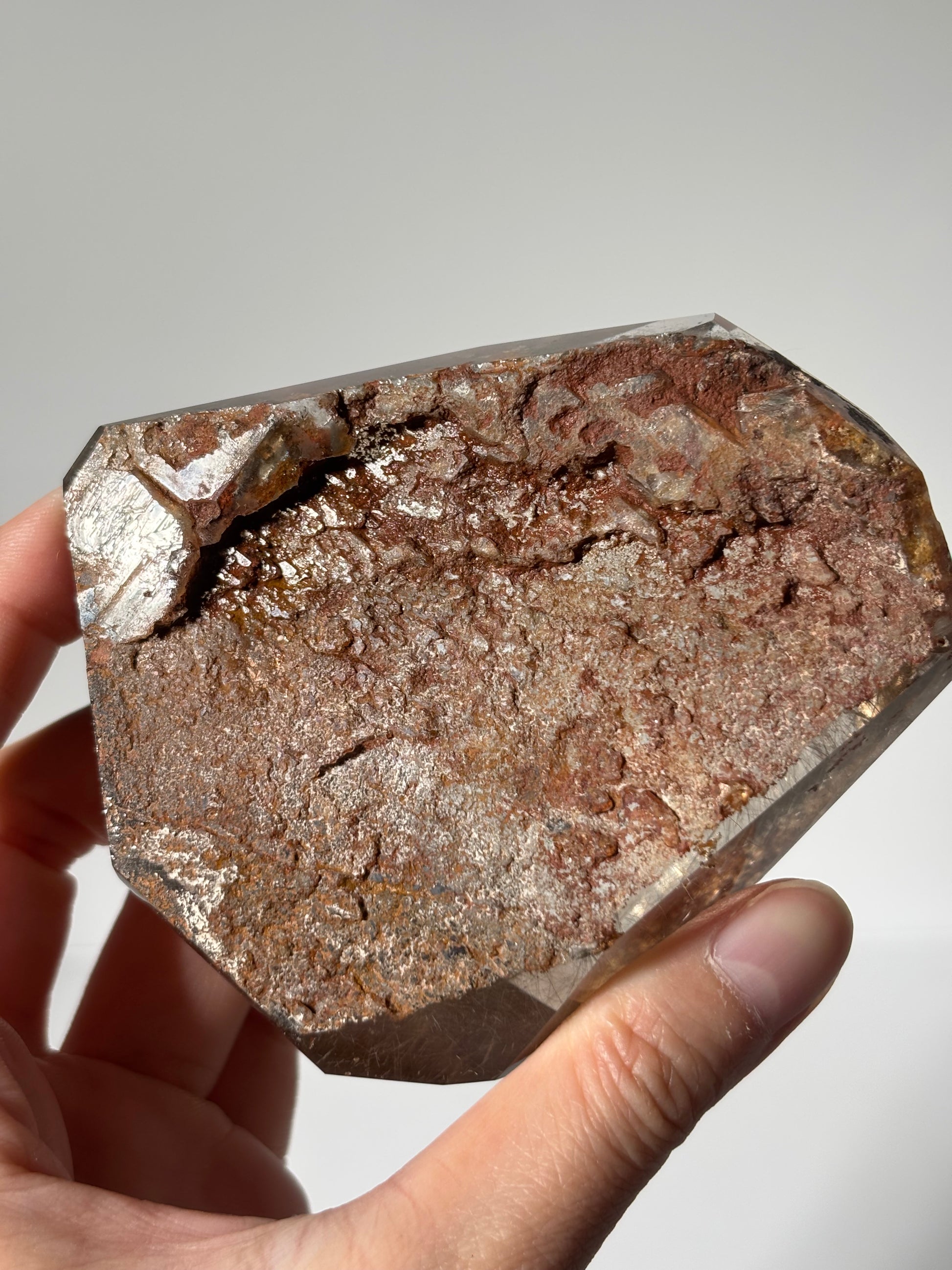 Rare collector’s grade orange lodalite with silver starburst rutile freeform.