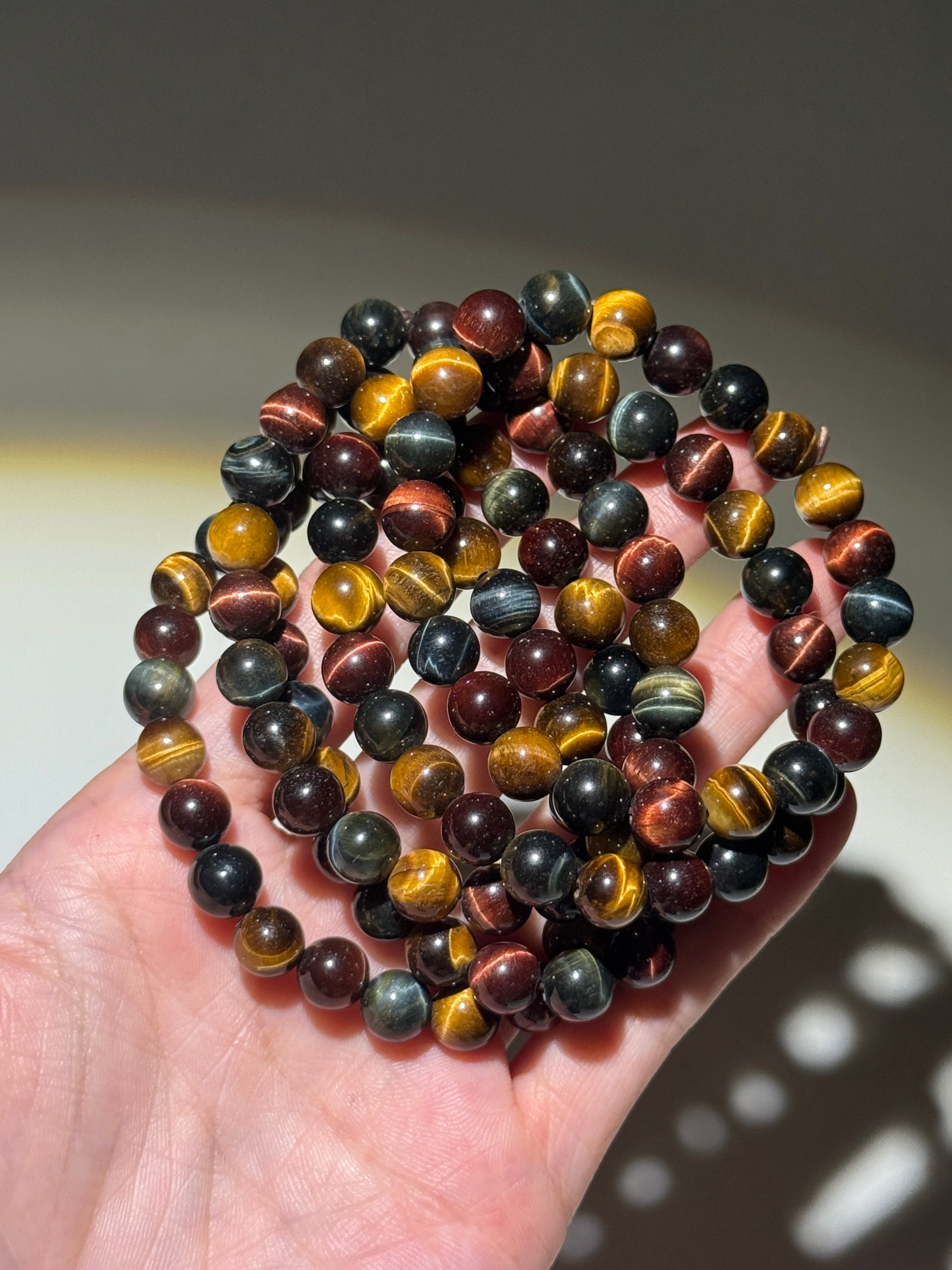 Tricolor Tiger Eye Bracelets, 8.5mm